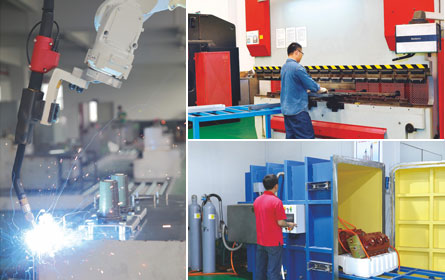 生產(chǎn)設(shè)備:德國、芬蘭和日本進口的數(shù)控加工設(shè)備、全自動靜電噴涂生產(chǎn)線、鈑金加工設(shè)備、機械加工中心